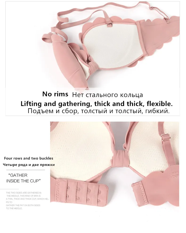 PINK LADY Floral Lace Front Closure Backless Push Up Bra Set