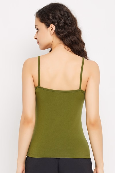 Forest green camisole crafted with breathable & stretchable cotton spandex fabric.
