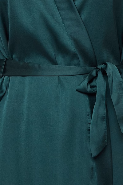 This dark green long robe is made of butter-soft and silky satin fabric, providing a luxurious feel against the skin. It has 3/4 length sleeves. The satin-tie up belt ensures a snug and comfortable fit.