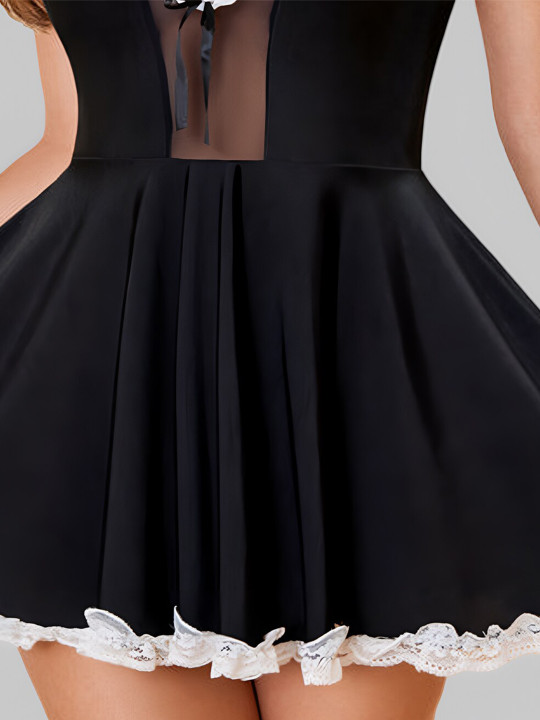 Black and white self design baby doll, has shoulder straps, flared hem
